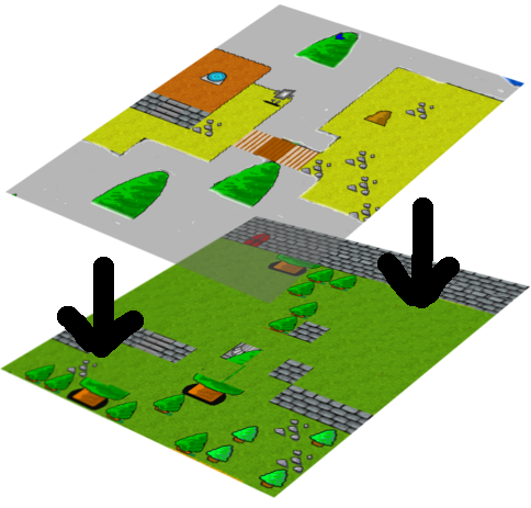 In RPGToolkit, the player, images, and collision areas are placed onto specific layers. Each of the layers are treated separately for interaction purposes and then drawn in order from bottom to top. This layer system allows some semblance of a 3D world, but all real gameplay is limited to occurring on exactly one layer at a time.