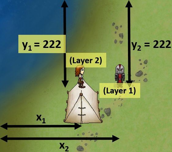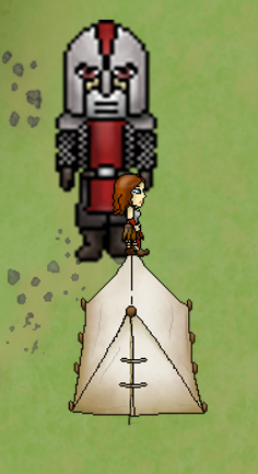 Consider the scenario in this picture: Sasha is standing on the edge of the top of the tent (halfway falling off), and there is a giant soldier behind the tent floating a few pixels off the ground ('cuz why not).